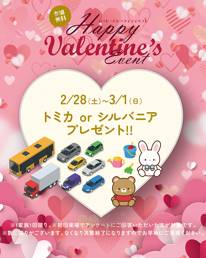 2月28日(土)〜3月1日(日)「トミカorシルバニアプレゼント!!」