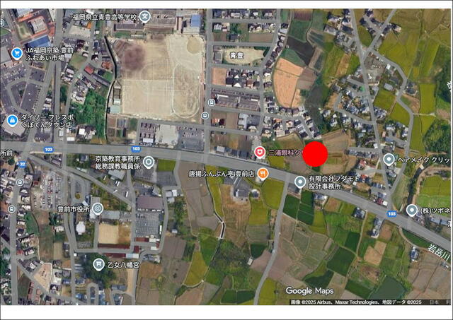 ※地図上の「対象地」は「〒828-0051 福岡県豊前市吉木」の場所を指しています。実際の場所ではない場合がございます。詳しくはお問い合わせください。