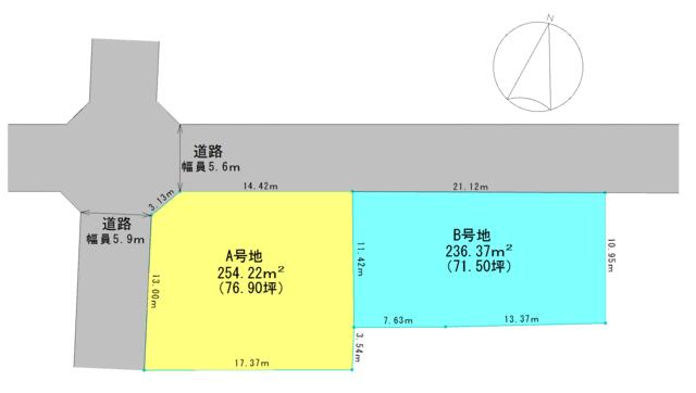 - 北西5.6m 公道 接面14m 南西5.9m 公道 接面13m 二方道路(除角地)