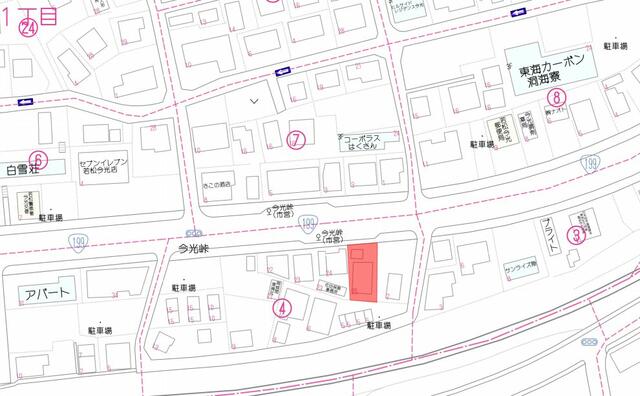 ※地図上の「対象地」は「〒808-0071 福岡県北九州市若松区今光1丁目」の場所を指しています。実際の場所ではない場合がございます。詳しくはお問い合わせください。