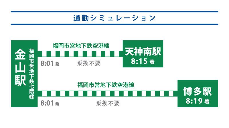 【天神まで最短28分】地下鉄七隈線/金山駅~天神南駅まで約14分+金山駅まで自転車4分で通勤通学に便利♪