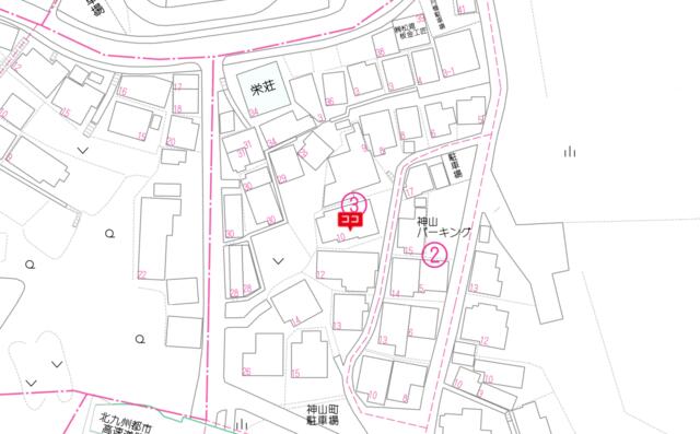 ※地図上の「対象地」は「〒805-0055 福岡県北九州市八幡東区神山町」の場所を指しています。実際の場所ではない場合がございます。詳しくはお問い合わせください。
