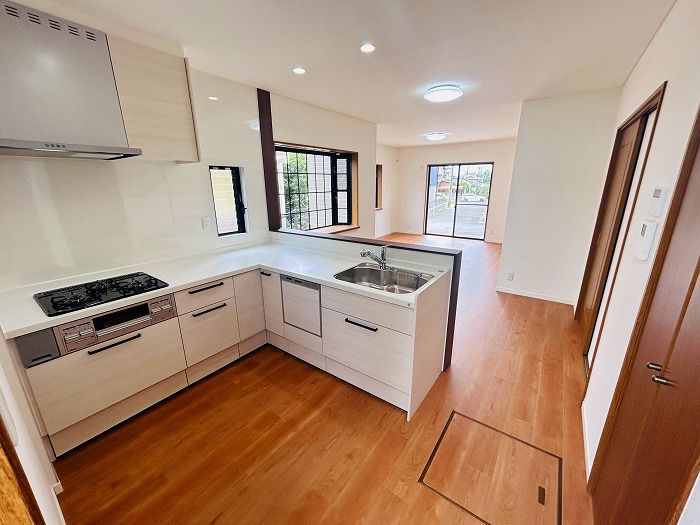 - 温水洗浄便座、トイレ2ヶ所、追焚機能、システムキッチン、カウンターキッチン、食器洗浄乾燥機、都市ガス、上水道、下水道、駐車場3台分、都市ガス、上水道、下水道