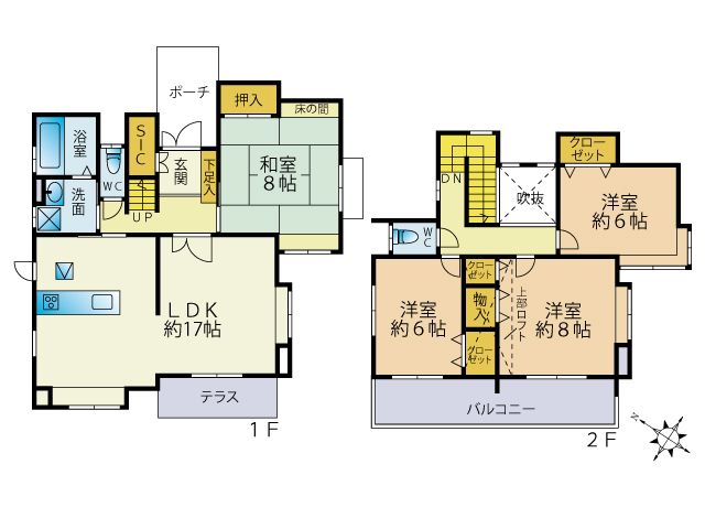 - 温水洗浄便座、トイレ2ヶ所、追焚機能、浴室乾燥機、システムキッチン、カウンターキッチン、床下収納、洗髪洗面化粧台、電気、都市ガス、上水道、下水道、モニタ付インターホン、庭、駐車場2台分、都市ガス、上水道、下水道、電気[火災警報器等設置済]