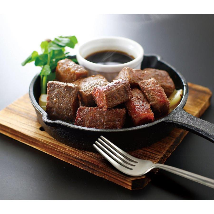 国産黒毛和牛のもも肉とかた肉を食べやすい一口サイズにカットした角切りステーキ。
